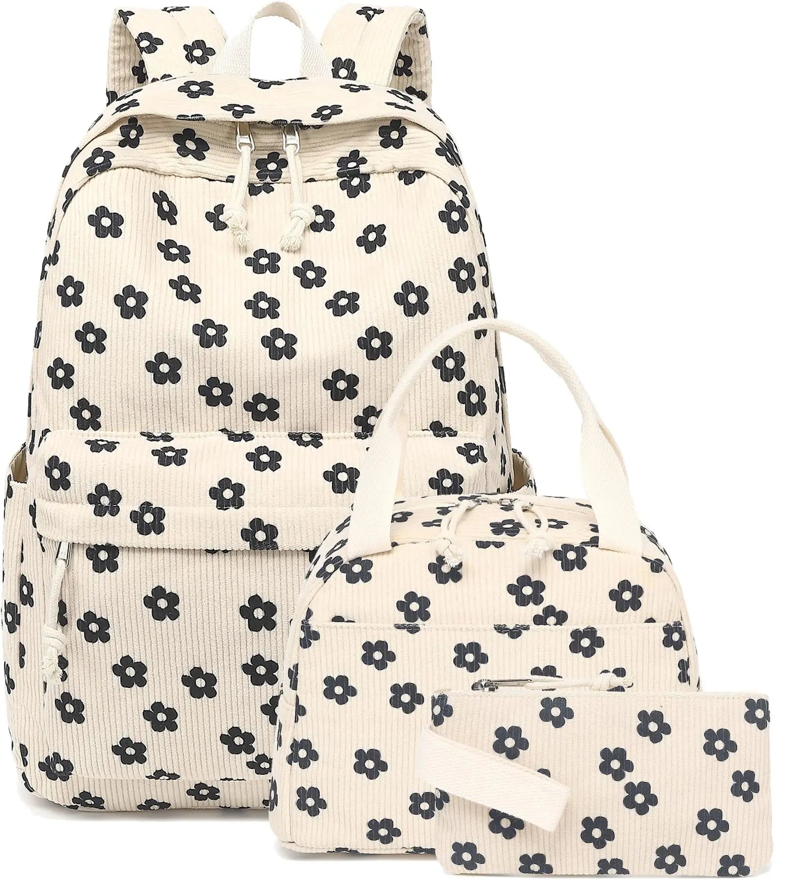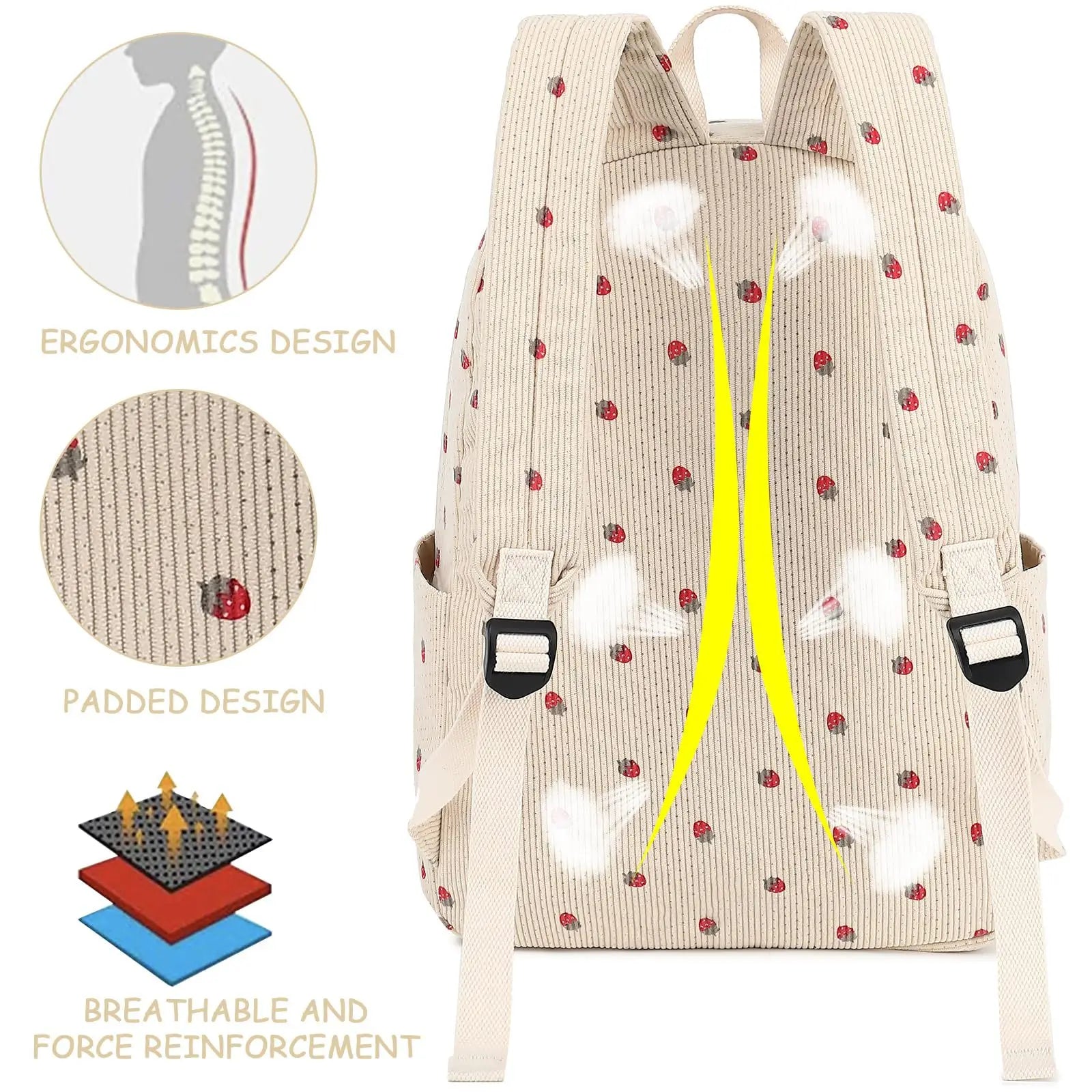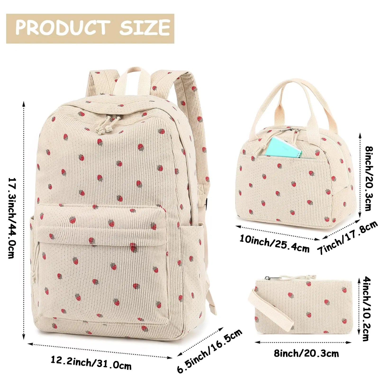 Product Description: Corduroy strawberry 3-piece set of high school students backpack light backpack female
