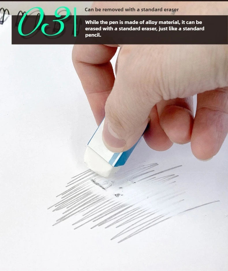 When inspiration strikes, you need more than a tool – you need a creative companion. Forged with aerospace-grade alloy, this all-metal pencil redefines writing with its self-sharpening -infused tip. It combines pencil's blendable layers with pen-like fluidity – no sharpening required, even after thousands of strokes.