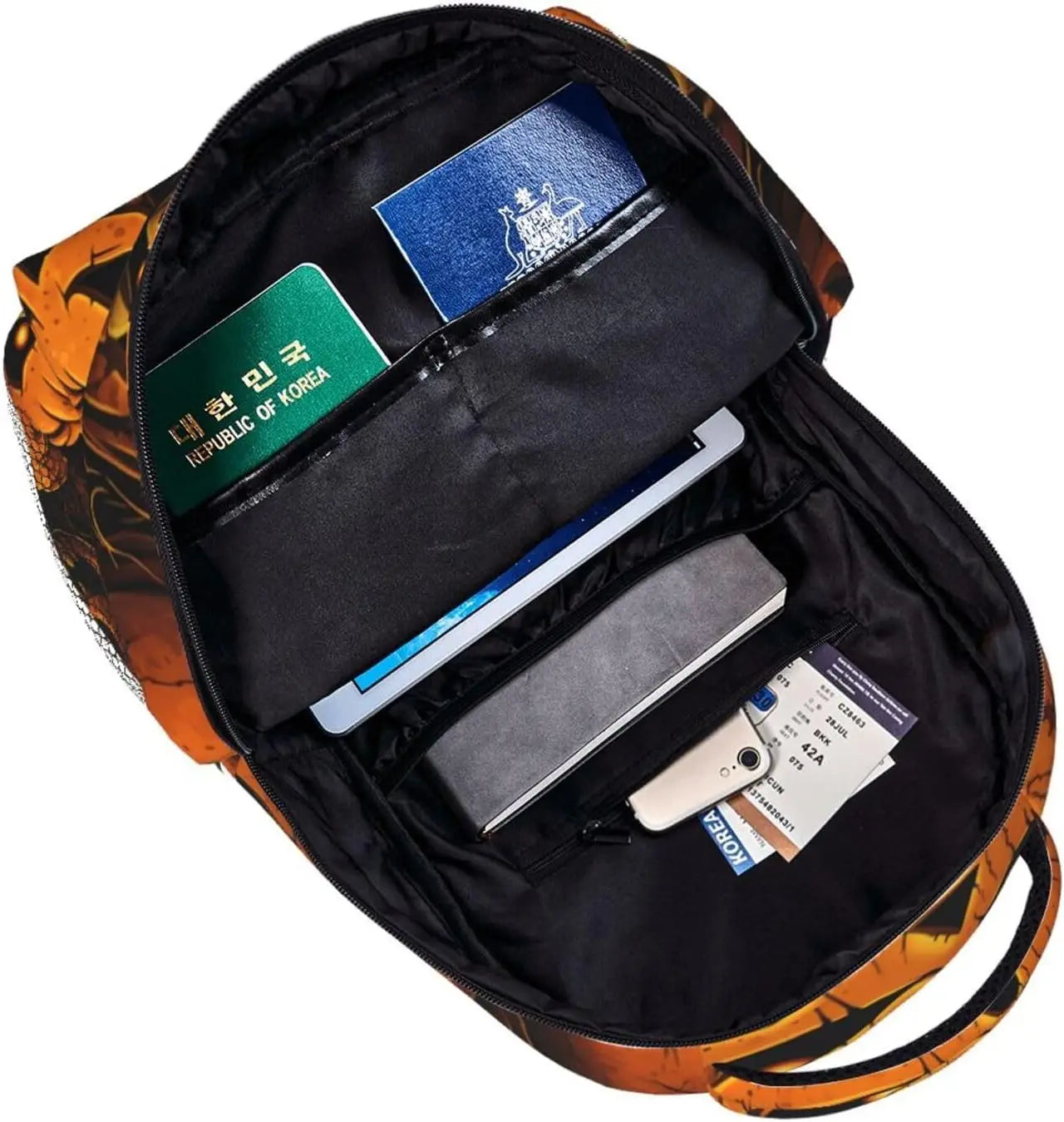 The main bag is suitable for your laptop, iPad, charger, books, clothes, snacks, wallet, pencil case, wallet, textbooks, notebook, etc. Make them in sequence.